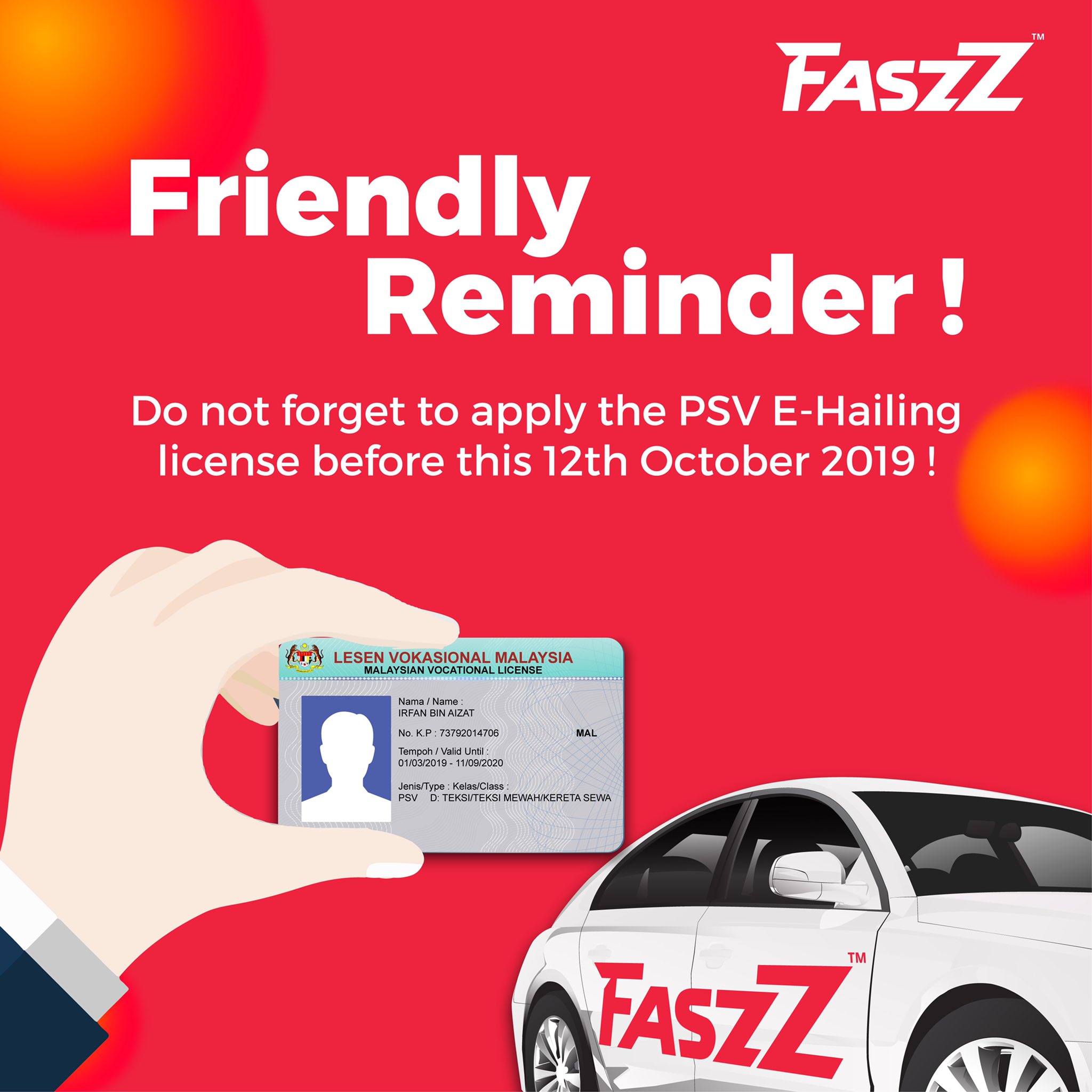 Faszz On Twitter Dear E Hailing Drivers You Can Still Go Online And Drive For Faszz But Don T Forget To Complete The Requirements For E Hailing Driver By Ministry Of Transport Mot Before This